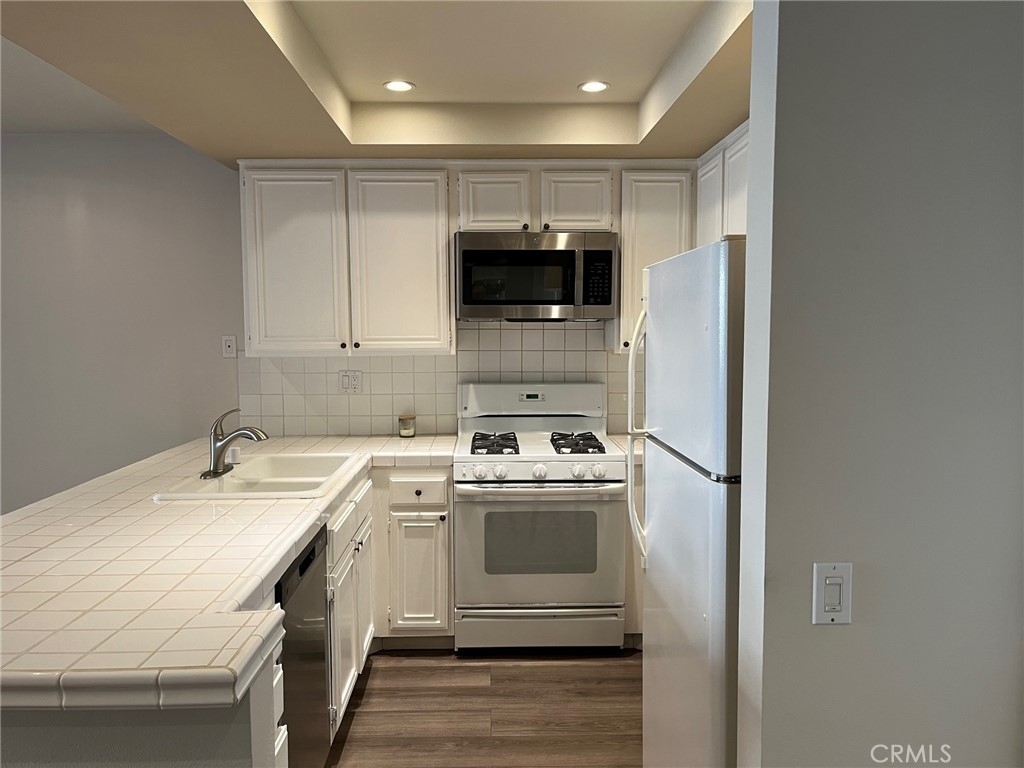 Totally upgraded 2-bedroom condominium within walking distance to Westfield Topanga Mall and the Topanga Village. First floor corner end unit with pool view. Fresh new paint, new appliances with full size washer and dryer inside unit. Two reserved tandem parking spaces. Quiet and private, feels like living in a private home! This beautiful condo has low HOA fee, central AC/Heat, recessed lighting, nice quiet patio and huge storage space. It is conveniently located near all the great shops and restaurants, Costco and the bus station.Owners and listing agents are Real Estate Licensed.