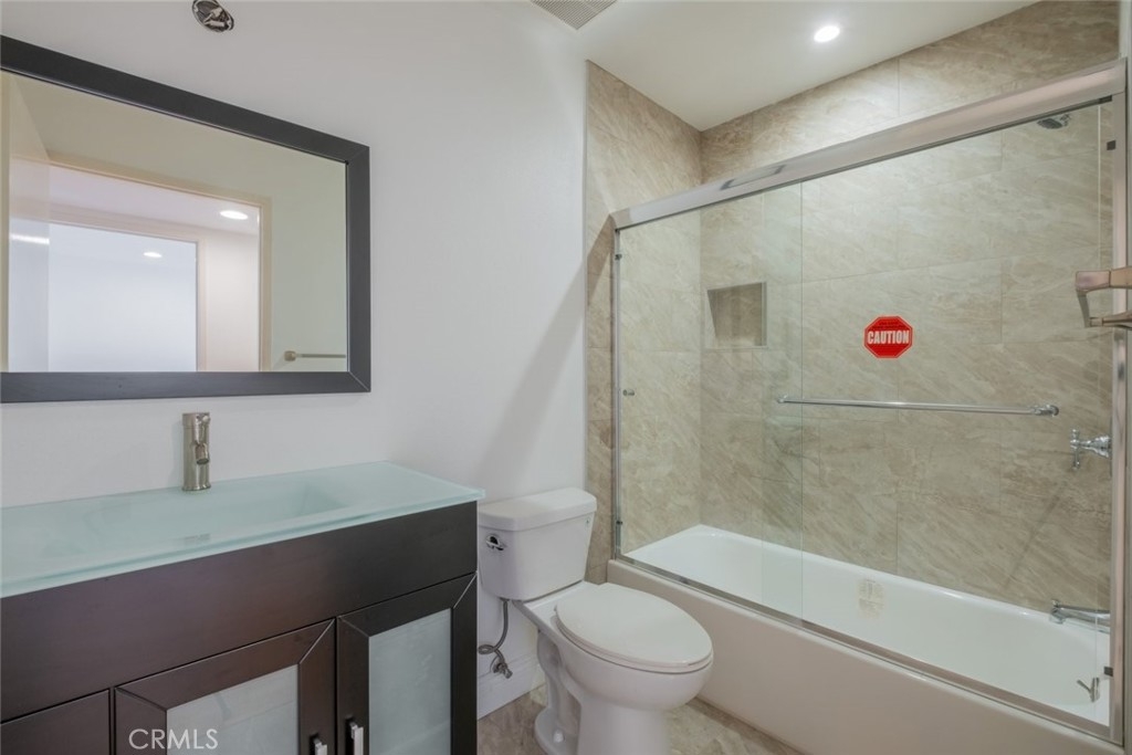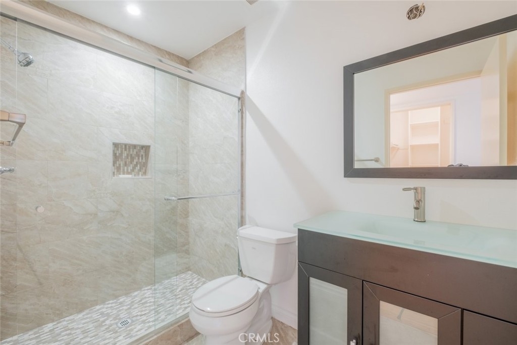 2BED + SPACIOUS LOFT, well maintained condo located in the heart of Canoga Park. Walk into an open spacious floorplan with high ceilings, laminate flooring, recessed lighting with dimmers, and plenty of storage space throughout the condo. Oversized living room nestled under a high ceiling that features a fireplace, a cozy dining area, and a bright kitchen equipped with quartz countertops and beautiful wood cabinets. Through the living room, you can access a private patio where you can add outdoor seating and plants. There are 3 bathrooms. Two of the main level bathrooms remodeled with new tile flooring, new tubs with a tiled backsplash, and new shower doors. New paint throughout the unit. Features a convenient in unit laundry with a washer/dryer. BONUS BONUS BONUS- THE LOFT is perfect for an office, playroom, storage space, so much potential to make it your own! Loft comes with its own bathroom! The primary bedroom has a private ensuite bathroom and a large walk-in closet. Beautifully maintained clean building with ELEVATOR access, a community parking structure where your unit has a side-by-side 2-car parking spot, as well as a community pool and spa. Walkable location close to plazas, dining options, public transportation, schools, and more. Located near the 101fwy, Topanga Mall, Costco, and big name shopping stores.