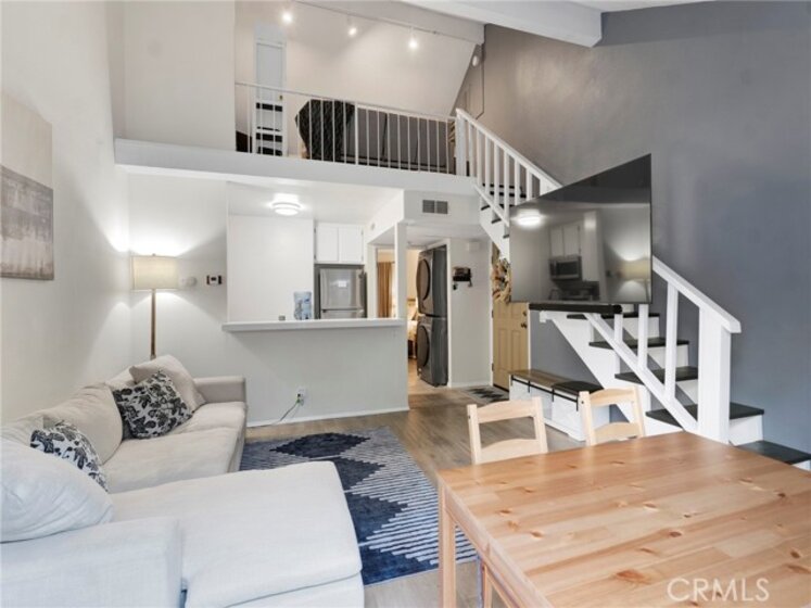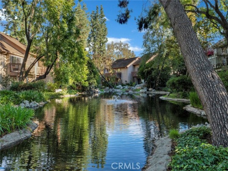 Welcome to Canoga Lakes! This charming Condo offers a tranquil, resort-like living experience with serene lake views, lush landscaping, and towering trees. Nestled within a peaceful community, enjoy the calming sights and sounds of waterfalls, streams, and wildlife, including ducks, turtles, and koi fish. The expansive grounds feature two sparkling pools, a spa, tennis courts, a recreation room, and a fitness center, offering a variety of amenities to enhance your lifestyle. This spacious 1-bedroom, 1-bath condo, features vaulted ceilings with an extra large loft. The living room opens to an extended patio overlooking the pool, providing the perfect space to relax and enjoy the serene surroundings. The unit is updated with newer flooring, updated kitchen, stainless steel appliances, including a stove, dishwasher, wine fridge, Updated Bathroom, Other notable features: a large attic for extra storage, and an in-unit washer/dryer. Located within walking distance of shopping, dining, and the Warner Center business district, this condo offers the perfect balance of peaceful living and convenience. One assigned parking spot is included. Come experience the relaxing atmosphere of Canoga Lakes, a place you'll love to call home!