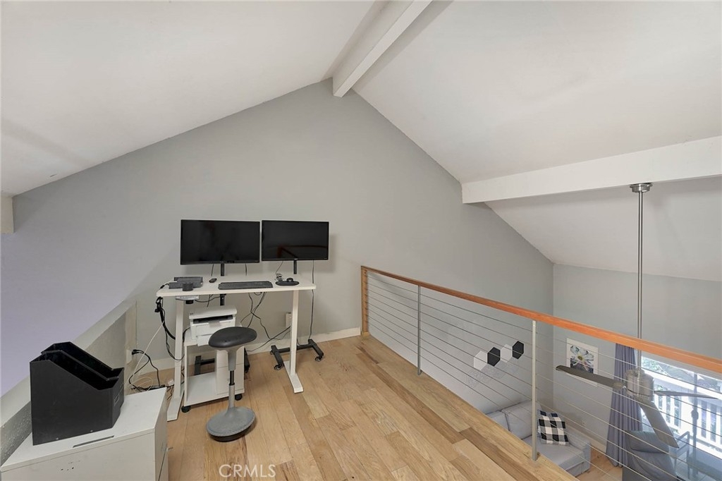 Step into this beautifully upgraded condo located in serene community with luscious landscaping and pond views. Featuring vaulted ceilings, an eye catching custom staircase, living patio/balcony area, loft and hickory engineered wood throughout. Kitchen upgrades include grey quartz counters, white wood/glass cabinetry, built-in Liehberr refrigerator/freezer, Electrolux stainless steel slide-in-gas oven with 5 burners and a warming drawer. Air Conditioning is less than one year old and is a Thermal Heat pump system with a newer AC Condenser outside the unit on the lower level and the air handler which was previously installed in the entry hallway (as is on all the units) was moved to attic for efficiency and noise reduction. Electrical has been completely redone and updated with a newer sub panel to accommodate the newer 220 V outlet and updated fuses. ** Large Attic has been finished with drywall, insulation and a temperature controlled automatic attic fan.** Community includes pool/spa/tennis courts/outdoor picnic area/exercise room as well!