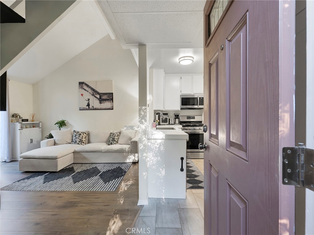 Welcome to Canoga Lakes! This charming Condo offers a tranquil, resort-like living experience with serene lake views, lush landscaping, and towering trees. Nestled within a peaceful community, enjoy the calming sights and sounds of waterfalls, streams, and wildlife, including ducks, turtles, and koi fish. The expansive grounds feature two sparkling pools, a spa, tennis courts, a recreation room, and a fitness center, offering a variety of amenities to enhance your lifestyle. This spacious 1-bedroom, 1-bath condo, features vaulted ceilings with an extra large loft. The living room opens to an extended patio overlooking the pool, providing the perfect space to relax and enjoy the serene surroundings. The unit is updated with newer flooring, updated kitchen, stainless steel appliances, including a stove, dishwasher, wine fridge, Updated Bathroom, Other notable features: a large attic for extra storage, and an in-unit washer/dryer. Located within walking distance of shopping, dining, and the Warner Center business district, this condo offers the perfect balance of peaceful living and convenience. Come experience the relaxing atmosphere of Canoga Lakes, a place you'll love to call home!