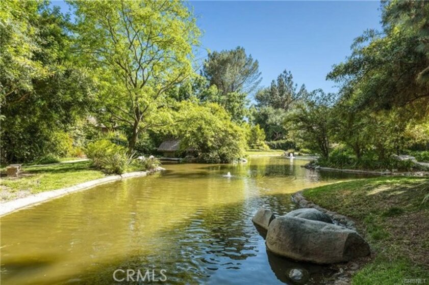 You are going to love living in Canoga Lakes! Canoga Lakes 1 bedroom, 1 bath with 488 square feet and amazing views from everywhere. Wonderful interior location on the upper level. Soaring vaulted ceilings and tranquil patio overlooking the beautiful streams and lush landscaping. There is convenient storage space in the attic and there is access through a pull-down staircase. Canoga Lakes is a resort-like gated community with pools, spas, lighted tennis courts and gym. Laminate floors, central AC and Washer and Dryer are right in the unit and included along with the refrigerator. As, there is a rental cap in Canoga Lakes, the buyer needs to be an owner occupant.