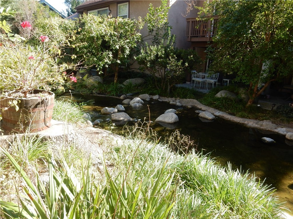 Canoga Lakes 1 bedroom in a tranquil setting with stream views. Pristine with new paint, carpet, binds, stove, sink and washer/dryer. Refrigerator is also included. Central AC, Bedroom has walk-in closet and vanity with mirror. Canoga lakes is a gated resort-like community with pools, spas, saunas, lighted tennis and gym. This desirable complex is home to lakes, streams, lush landscaping, fountains, streams, walking paths and expansive greenbelts. It's a wonderful and friendly atmosphere. You are going to love living in Canoga Lakes!