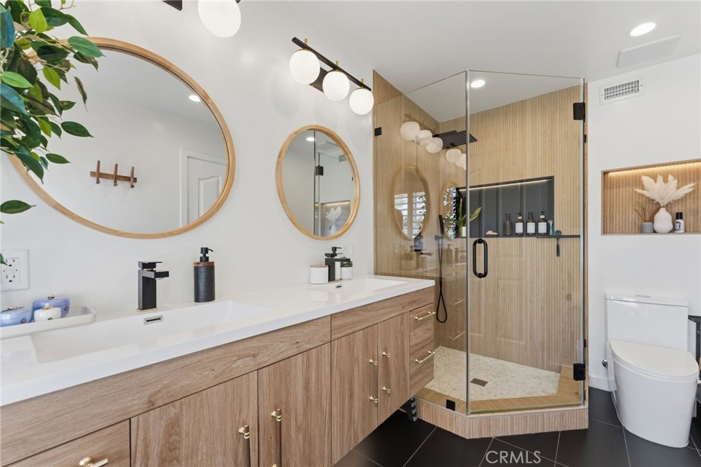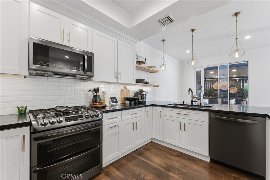 Stylishly upgraded and move-in ready, this home offers modern finishes, smart upgrades, and inviting indoor-outdoor living. Inside, new flooring throughout and fresh interior paint create a bright, clean feel from the moment you enter. The remodeled kitchen features custom cabinetry, granite countertops, and matching black stainless steel appliances including the stove, refrigerator, microwave, and dishwasher. Elegant pendant lighting and a dining room chandelier add warmth and character to the living space. The primary bathroom has been completely remodeled, the powder room has been fully updated, and the second bathroom features updated flooring. Additional improvements include recessed lighting in the garage and new shutters on all east-facing windows. The backyard offers a welcoming space for relaxing or entertaining with a custom-built gazebo and high-quality turf designed for easy maintenance. Smart home features including a smart lock and smart thermostat add everyday convenience. Thoughtfully updated throughout, this home blends modern style, comfort, and functionality.