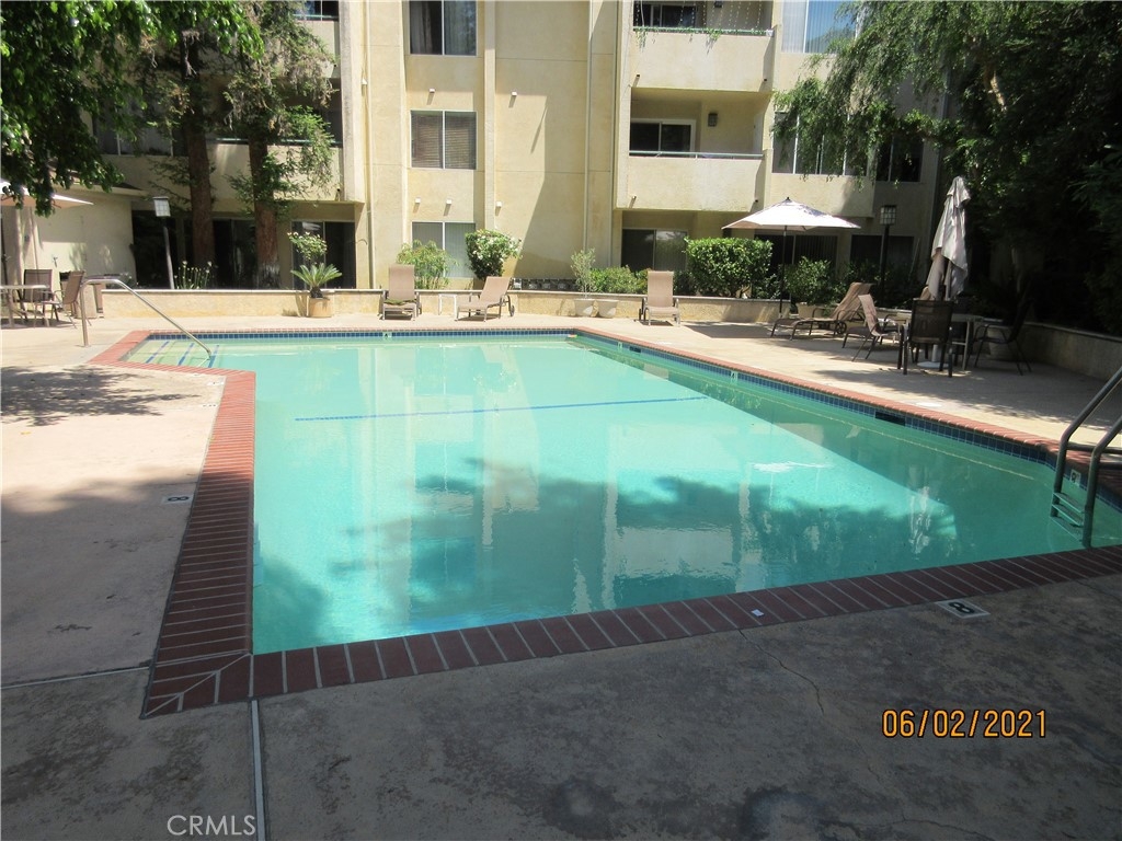 Wonderful 2 bedroom condo with easy access to EVERYWHERE! This has a great layout with 2 bedrooms on opposite sides and kitchen, living room and dining area in the middle. Enter the unit to find a good sized dining area and kitchen with gas range and breakfast bar. Continue to the large living room with a brick corner fireplace and access to the balcony that overlooks the plush common area and community pool and spa. The master bedroom shares the balcony and has a dual sink vanity, large mirrored closet and private toilet and tub/shower. The 2nd bedroom on the other side is just a few steps from the 2nd bathroom and right by the closet with stackable washer and dryer. This unit is located a quick walk from the elevator. The 2 car tandem carport parking is also close to the elevator. Everything about this unit is convenient!