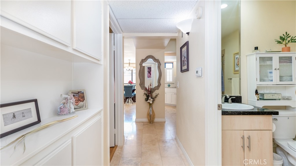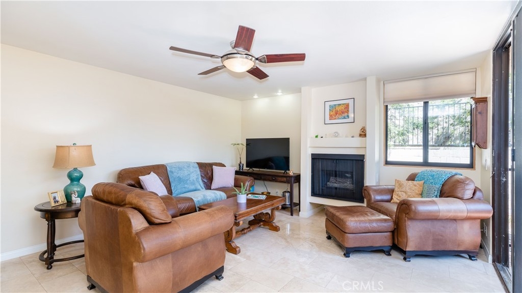 Very Private End Unit in Elkwood Terrace community. This bottom floor secluded beauty feels like a small home with its open and bright floorplan and very private patio, looking out to the rarely used common area. Lovely light and bright recently tastefully updated kitchen with granite counters, white shaker cabinets, stainless steel sink, dishwasher, stove and microwave. Formal dining area with walls of windows bring the natural light in, to enjoy a quality dining experience. Classy travertine floors throughout the living area give an even more spacious feeling to this sharp floorplan. Living room with a cozy gas Fireplace looks out to the private patio. Perfect to take brake, relax or enjoy a good book in your own secluded space. Private Master Suite with its own Bath has beautiful bamboo flooring, big closet and a large Tub with a shower. The second Bathroom in the hallway has a very generous size shower, updated vanity with granite counters and a large sink. The second bedroom is also accented by Bamboo flooring and great closet space. The community has a lovely Pool area with a pool, spa, patio with a lounge area and a great Gym. Come and enjoy the lifestyle this community has to offer.