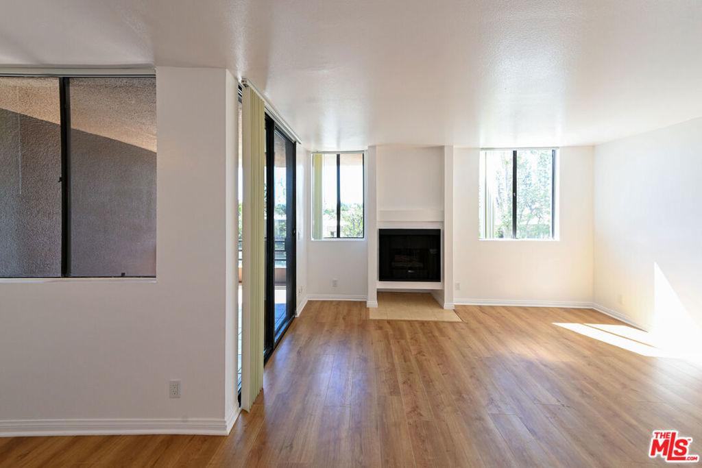 Light and bright second floor unit in the highly sought after Elkwood Terrace community. This secluded beauty feels like a small home with its open floorplan and private balcony. Recently updated kitchen with sleek black counters, wood cabinets, stainless steel sink, and brand new dishwasher, range and microwave. New flooring throughout the living area and bedrooms give an even more spacious feeling to this sharp floor plan. Living room has a cozy fireplace and looks out to the beautiful Santa Monica mountains. Perfect to relax after a long day in your own secluded space. Private primary suite with its own bath, big closet and a large shower. The hallway bathroom has a very generous sized shower with granite counter. The second bedroom also has ample closet space. The community has a lovely pool deck with a pool, spa, lounge area and fitness center surrounded by trees and lush greenery.