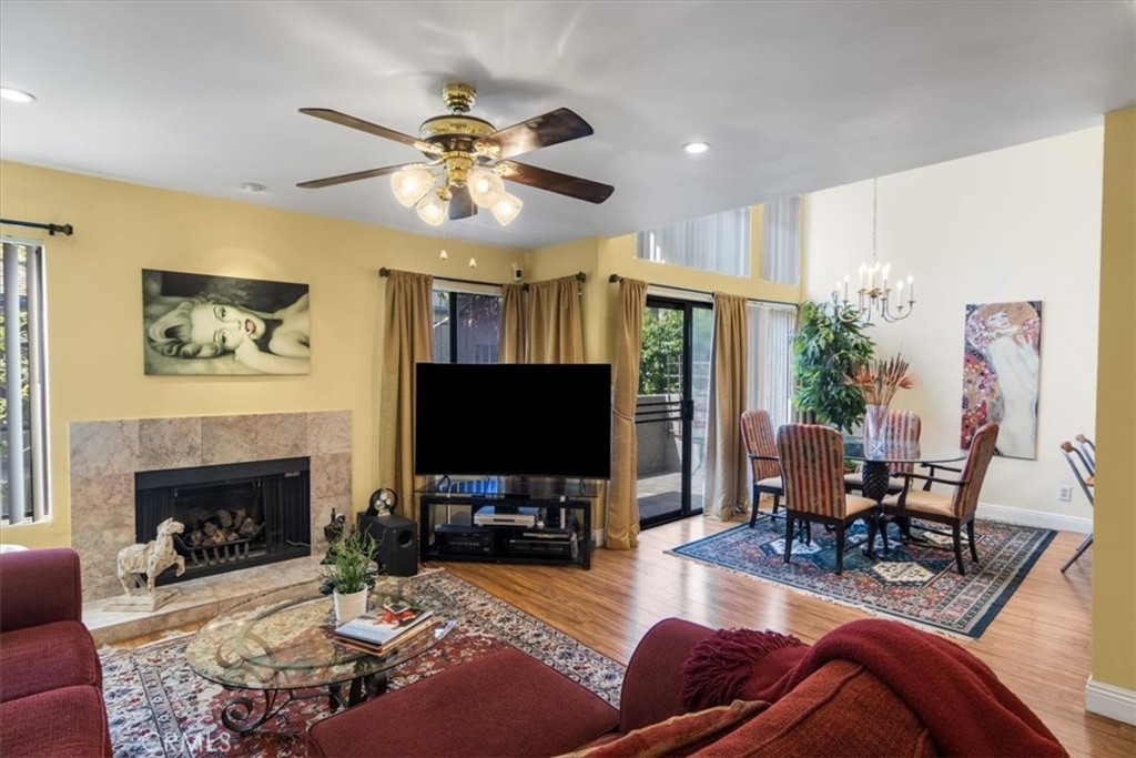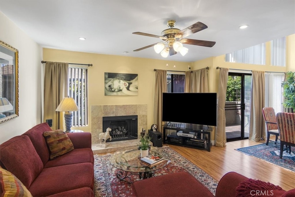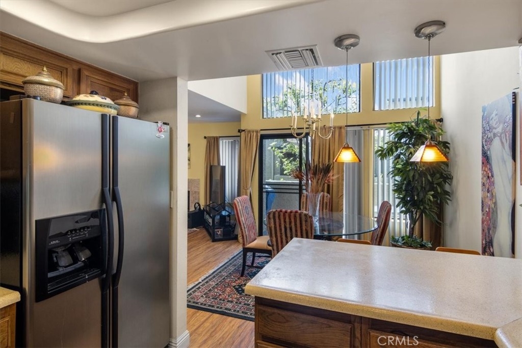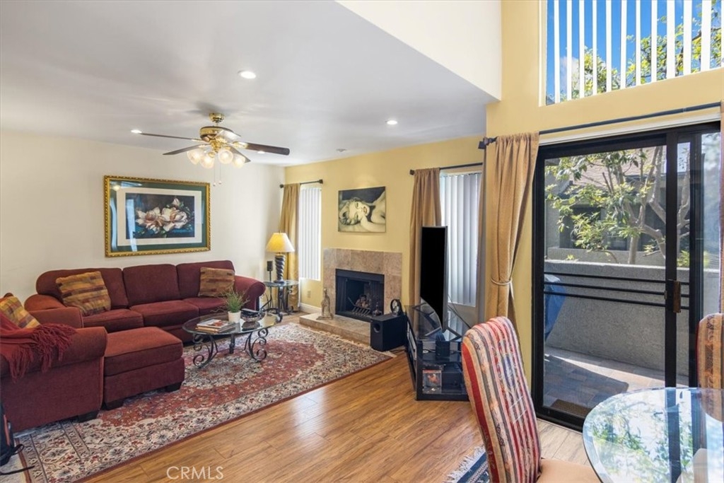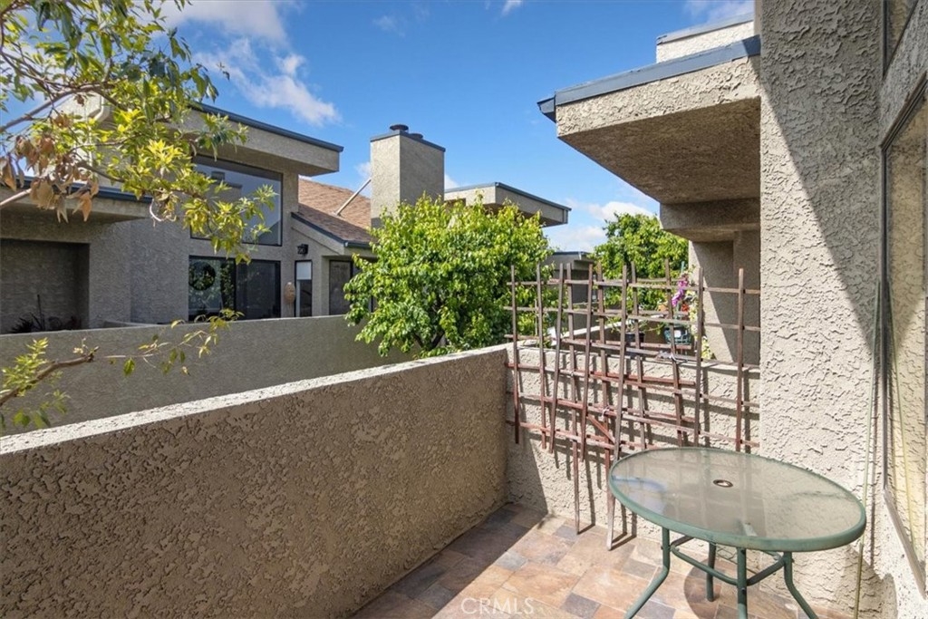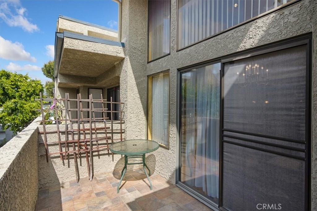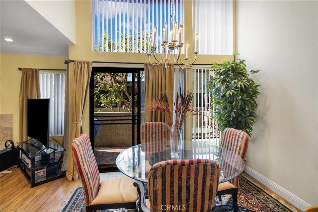 Turn key top floor condo unit, with spacious vaulted ceiling in dining areas. Large windows get fantastic light during the day. Convenient washing machine hookups in unit means no more trips to the laundromat. Both bedrooms boast great closet space, with main bedroom having his and hers closets. Light updates in both bathrooms. Outside private patio is fantastic for summer barbecuing. Newer paint throughout. Kitchen counters were updated, stainless steel sink as well as newer stainless steel appliances. Living room with cozy fireplace, flows right onto open dining room and kitchen. Newer central AC system installed. Refrigerator as well as washer and dryer are included. There are 2 covered tandem parking spaces as well as covered guest parking. The complex has a pool and spa as well as additional storage area. HOA covers water, sewer, trash, basic cable and internet. You don't want to miss this one!
