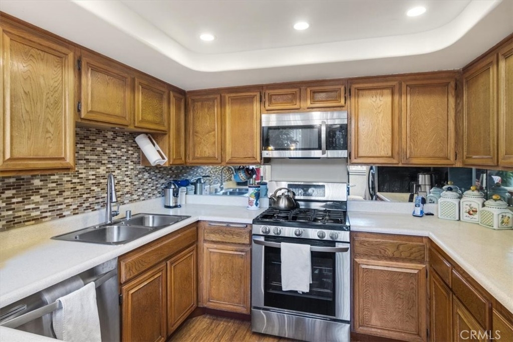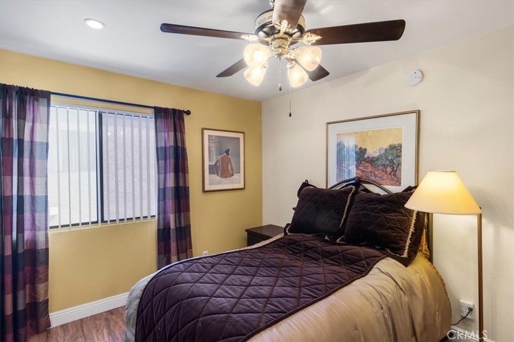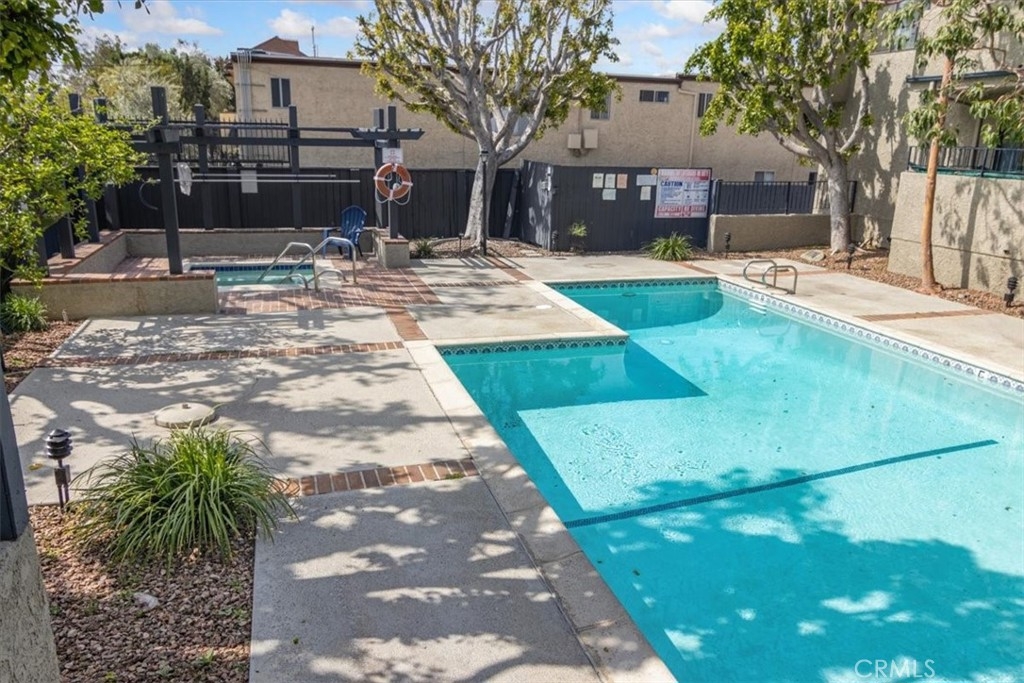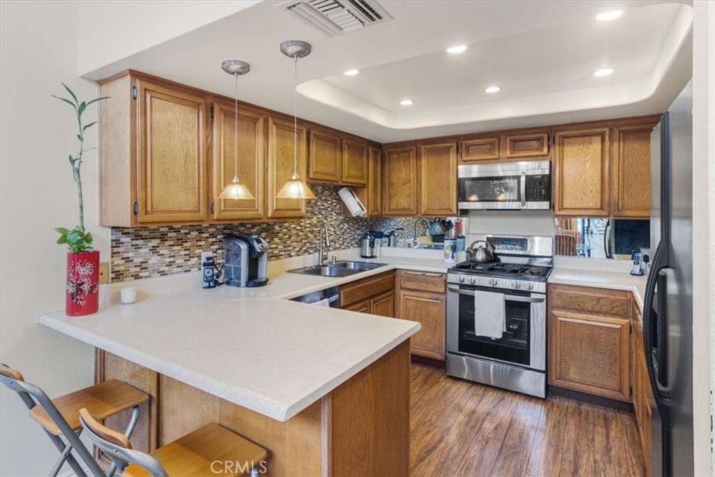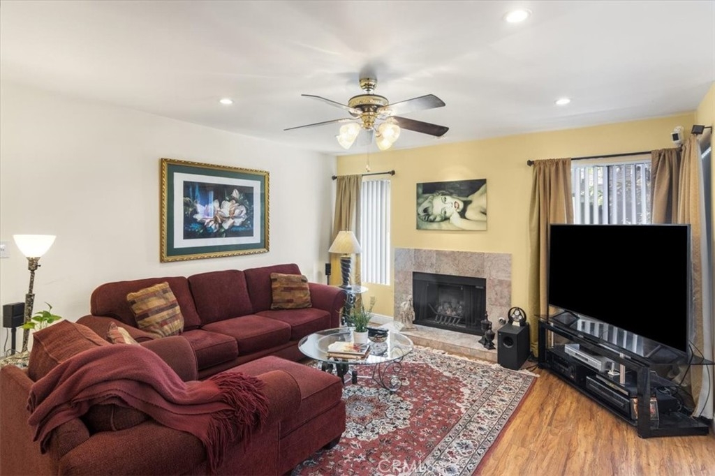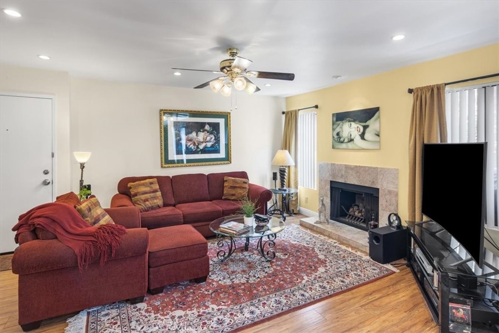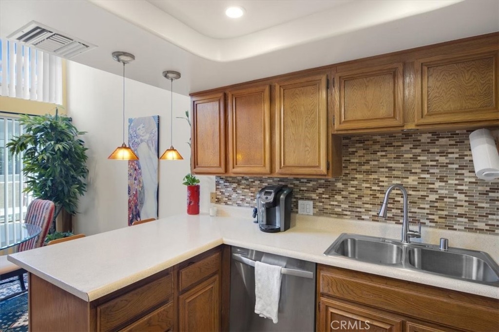 Turn key top floor condo unit, with spacious vaulted ceiling in dining areas. Large windows get fantastic light during the day. Convenient washing machine hookups in unit means no more trips to the laundromat. Both bedrooms boast great closet space, with main bedroom having his and hers closets. Light updates in both bathrooms. Outside private patio is fantastic for summer barbecuing. Newer paint throughout. Kitchen counters were updated, stainless steel sink as well as newer stainless steel appliances. Living room with cozy fireplace, flows right onto open dining room and kitchen. Newer central AC system installed. Refrigerator as well as washer and dryer are included. There are 2 covered tandem parking spaces as well as covered guest parking. The complex has a pool and spa as well as additional storage area. HOA covers water, sewer, trash, basic cable and internet. You don't want to miss this one!