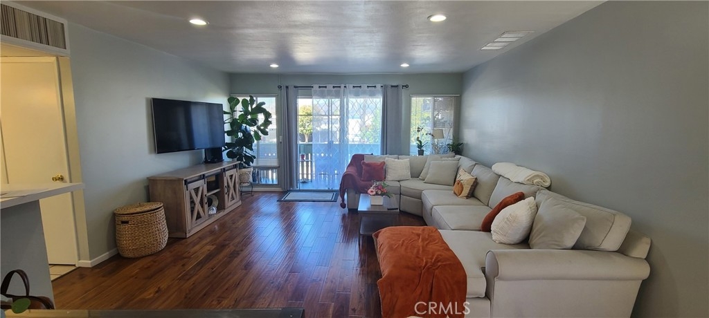 Remodeled and ready to move in condo located in a quiet interior location of Village Park complex. This unit has 2 bedrooms & 2 bath. Nicely painted interior,engineered wood floors. Newer cabinets in the kitchen with soft close drawers and stone counter tops. Kitchen with breakfast bar opens to spacious living room with private balcony/decking. Gated complex boasts swiming pool, spa, rec room,kids playground and community laundry with park-like grounds. HOA due covers water, gas and trash. Convenient access to parks,public transportation and shopping malls .