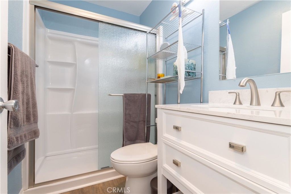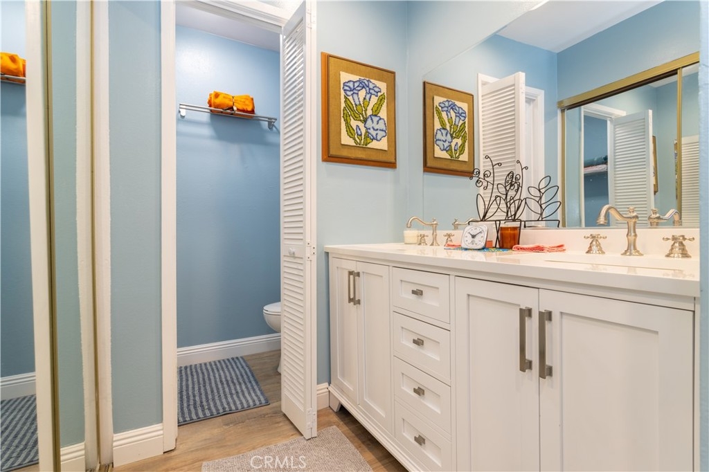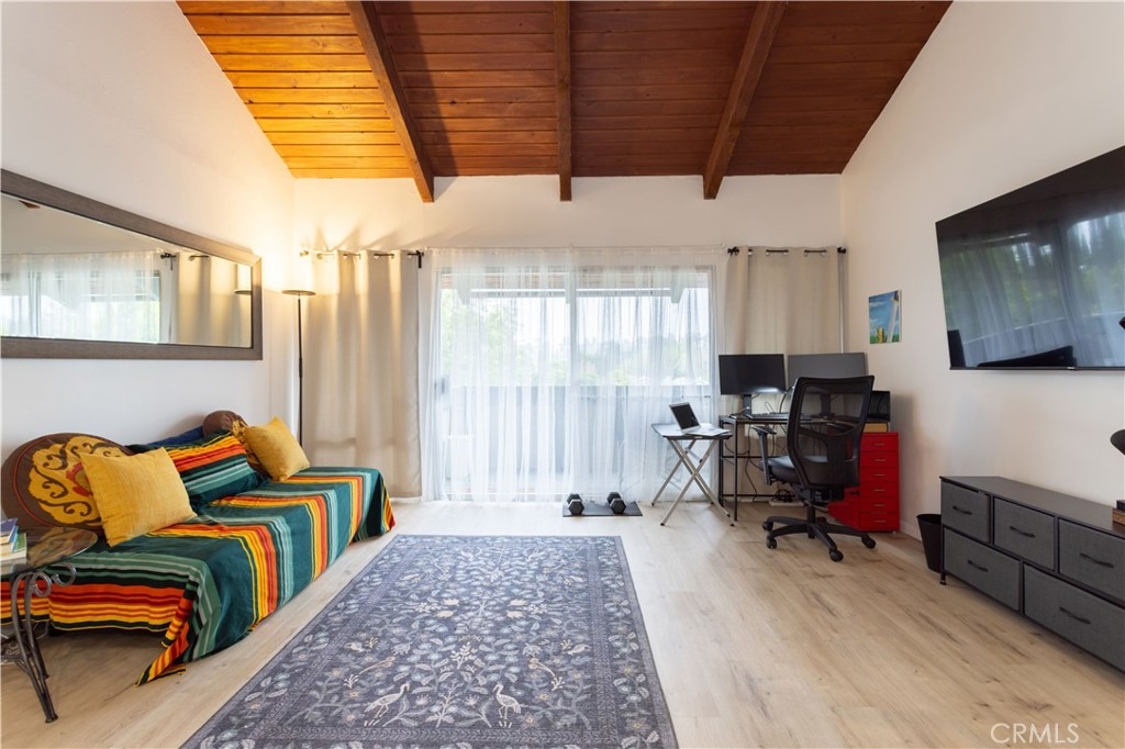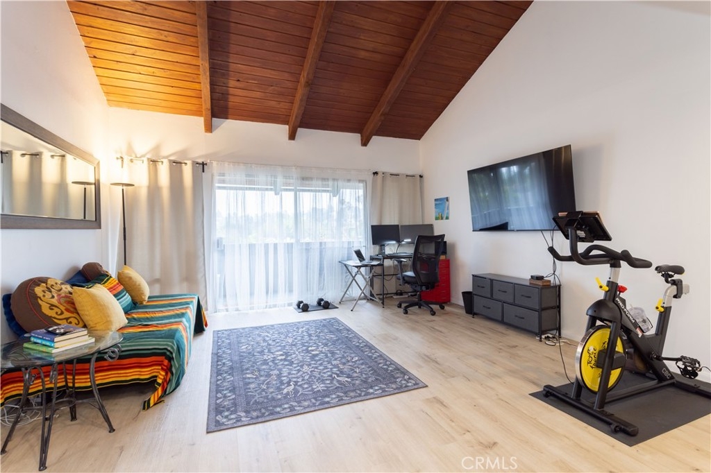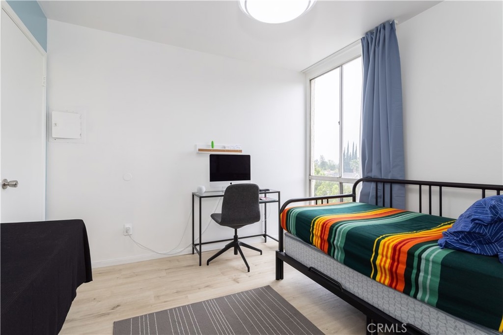 This **2+2 condo** in the prime community of Canoga Park has been remodeled with an open floor plan and plenty of light. The vaulted ceilings add to the spacious feel of the unit. The kitchen features a wide deep sink, newly painted cabinets, stainless steel refrigerator, and stainless steel dual oven with air fryer and the microwave is connected to an external exhaust fan . Luxury vinyl laminate flooring runs throughout the unit. Both bathrooms have been updated with new fixtures and walk-in showers with glass doors. The guest bedroom has a new retractable light fixture with LED lights, new curtains, new closet mirrors, and a new bidet faucet in the guest bath with an exhaust fan with bluetooth speakers.. The primary bedroom has new curtains and a new wall-mounted TV system. The en-suite bath has a new walk-in shower and fixtures, new double sink and fixtures, and a new bidet faucet. The unit also features keyless entry and a Nest thermostat. Enjoy the best view in the complex from the patio which also has a new shade. This unit is conveniently located close to the 101 freeway and has easy access to the 118 freeway and orange line. It's also close to parks, hiking trails, walking paths and shopping centers.