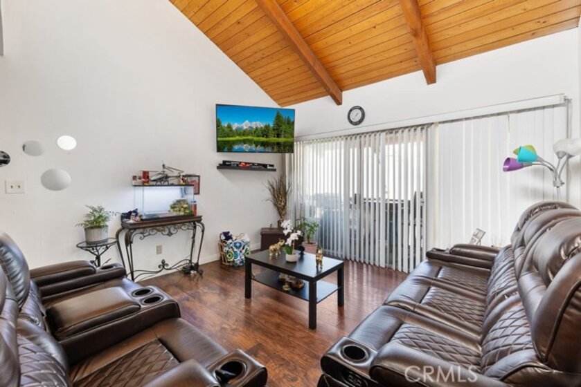Welcome to this charming 2-bedroom, 1-bathroom condo offering 829 sq. ft. of comfortable living in the heart of Canoga Park. The home features a light-filled living room with striking wood beam ceilings, creating warmth and character. The layout includes a spacious primary suite, complemented by central A/C and heating for year-round comfort. The community offers fantastic amenities including a sparkling pool, relaxing jacuzzi, recreation room, and convenient on-site laundry facilities. Ideally located just minutes from the Topanga Mall, The Village, Costco and plenty of dining and entertainment options, this home offers the perfect blend of comfort and convenience at an incredible value.