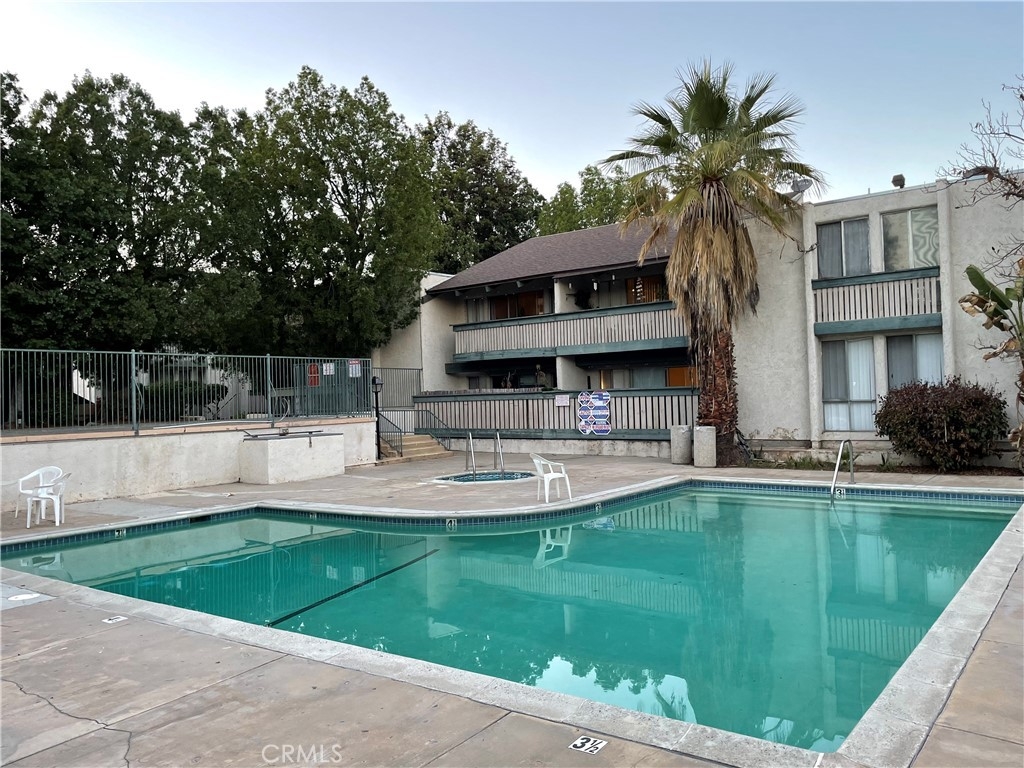 Top floor unit with lots of natural light. This 3 bedrooms 2 bath condo is in move-in condition. Kitchen with new stove, dishwasher, new floor and new painting. This is one of the special units with high cathedral ceiling in the living room. Brand new designer flooring in bedrooms. Tile throughout the rest of the unit. Large master bedroom with his and her closets. Lots of windows and very bright. The sliding glass door leads you to a large balcony overlooking treetops. One of the best parking spaces, covered and close to entry steps. The complex has a swimming pool, clubhouse, BBQ area and laundry room.
