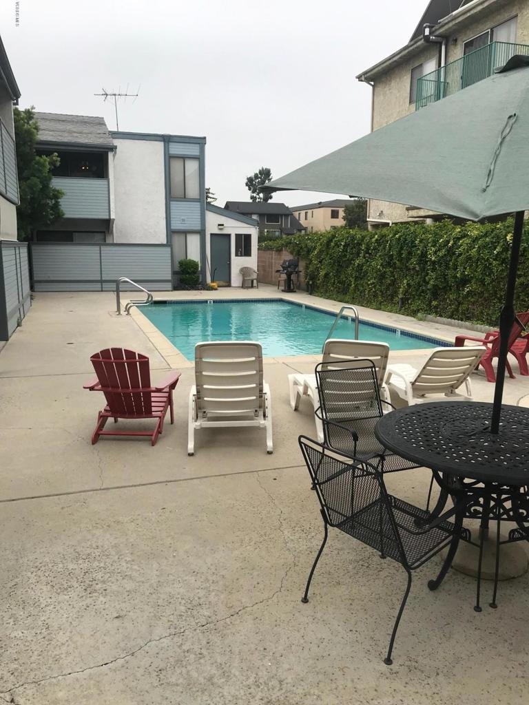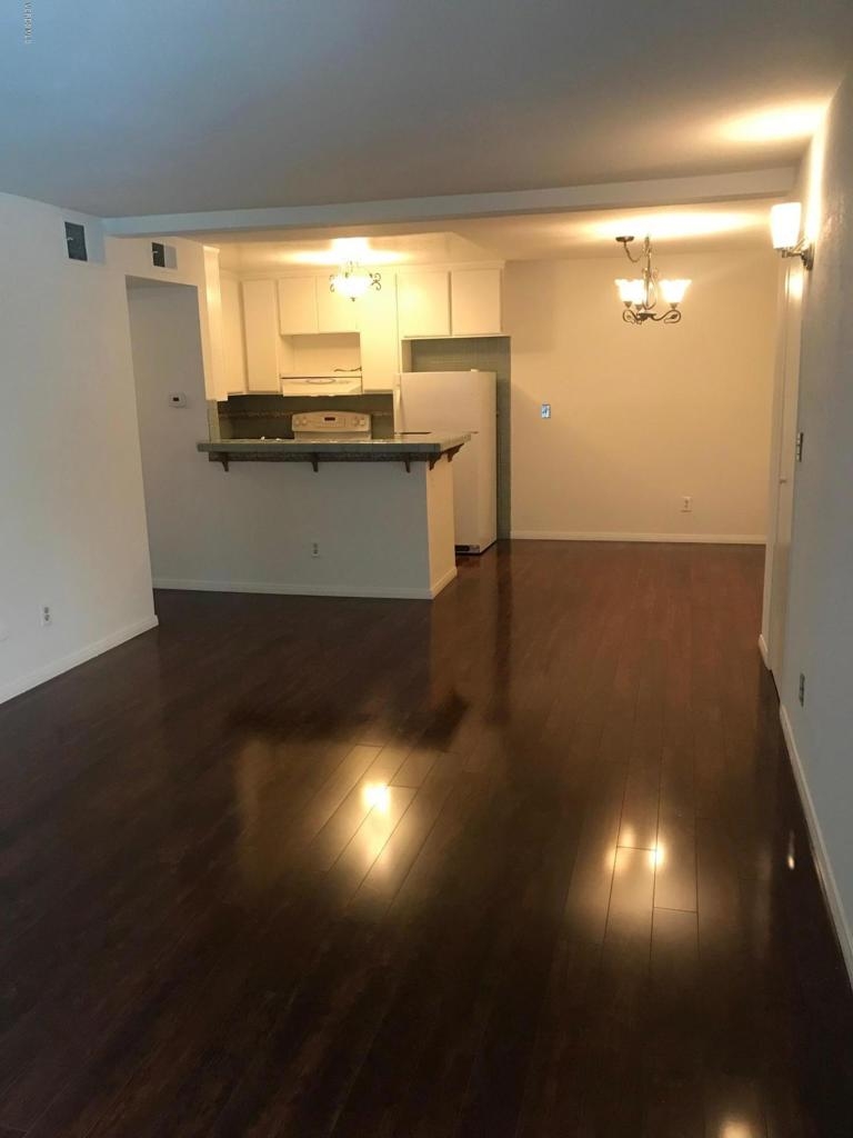 Security gate and freshly painted large 1 bedroom, 1 bath unit on the ground floor. No steps! Surrounded with greenery! Private location. Close to the clean laundry room, sparkling pool and barbecue! Easy maintenance newer wood floors and open floor plan. Spacious bedroom with lots of closet space. Full remodeled bathroom. Ready to Go! Show and Sell!Easy access to the gated parking spots!