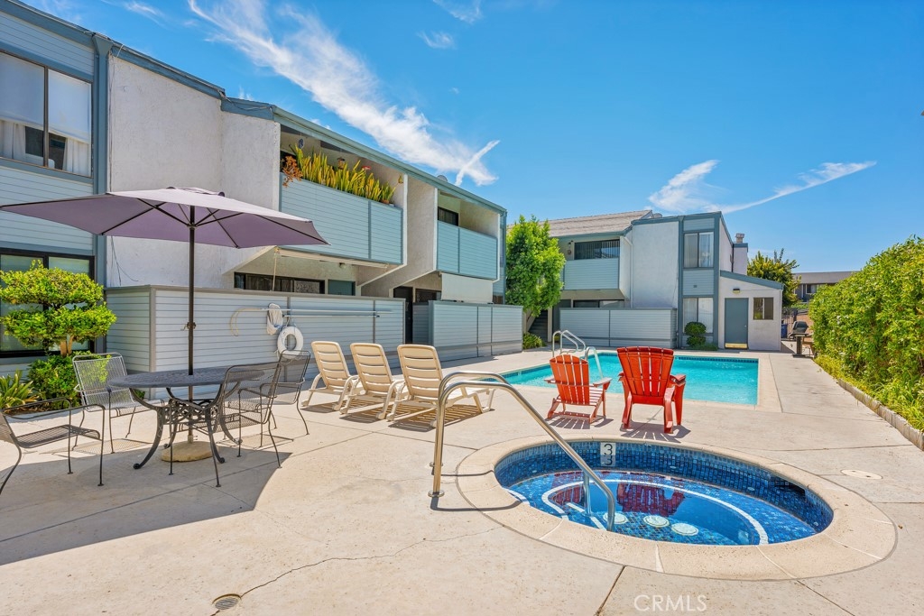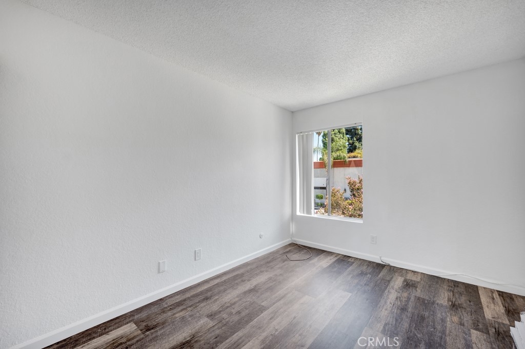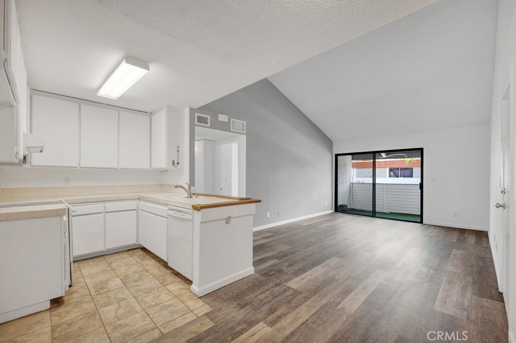 This second-floor unit with many amenities is located in one of Canoga Parks most highly sought after gated communities. The colorful flowerbeds, manicured hedges and mature shade trees further enhance its eye-catching curb appeal. Here are just a few of its many other fine features: The front door sweeps open to a bright and flowing, freshly painted, open concept floor plan with soaring pitched beam ceilings and approximately 837 sq. ft. of living space. The spacious living room is drenched in natural light and is further enhanced with new complementary wood laminate floors and sliding glass doors that lead to the private covered balcony. The cook in the family is going to truly appreciate the open and bright kitchen with its white cabinetry, tiled counters tops with back-splash, dual basin sink, electric range with ventilation hood range, dishwasher and easy care tiled floors; plus, a convenient breakfast bar. The dining room fittingly adjoins the kitchen and it is perfect for any occasion. 2 bedrooms and 2 bathrooms. The primary suite is bathed in natural light from a large picture windows and is further enhanced with high ceilings, dual closets, mirrored wardrobe doors and gleaming new wood laminate flooring; plus, a private en suite bathroom with vanity, wall-to-wall dressing mirror, glass enclosed tiled tub/shower and tiled floors. Additional bright and airy bedroom with gleaming picture windows, mirrored wardrobe doors and new wood laminate flooring. Guest bathroom with modern vanity, undermount basin, framed dressing mirror, tiled step-in shower and tiled floors. Central air & heat. Handy community laundry facility. You will spend countless hours enjoying the sparkling community pool and spa. Gated parking that provides room to park and care for your vehicle off-street. Centrally located to Chatsworth and Canoga Park businesses, and conveniently located close to shopping, restaurants and public transportation.